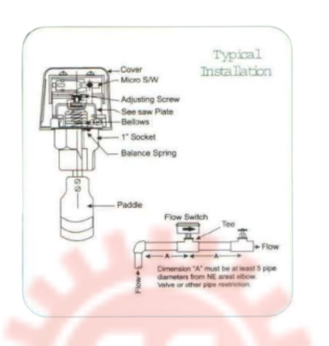 Ensure the flow switch cover is properly replaced before leaving the job.